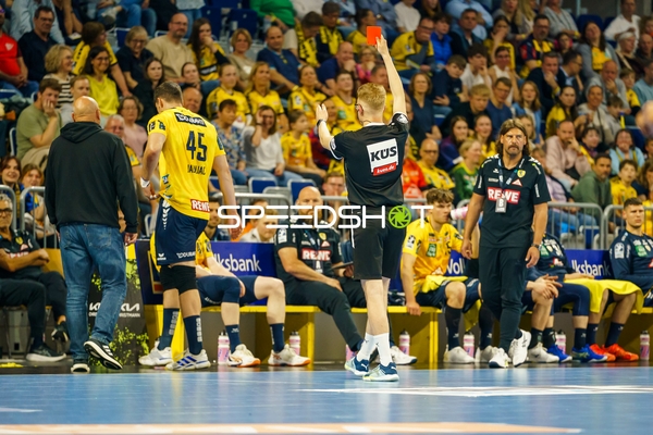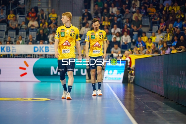 Jon Lindenchrone Andersen (42, Rhein Neckar Löwen) und Patrick Groetzki (24, Rhein Neckar Löwen) auf Spielfeld