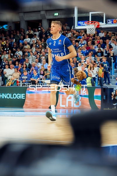 Erol Ersek (11, MLP Academics Heidelberg) mit Ball gegen TJ Crockett (1, Basketball Löwen Braunschweig)