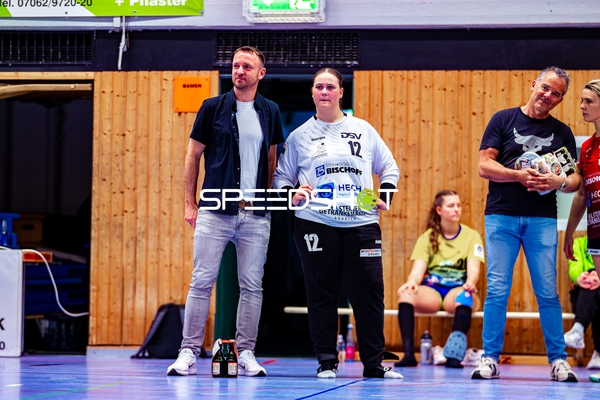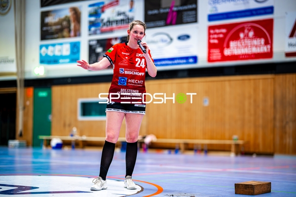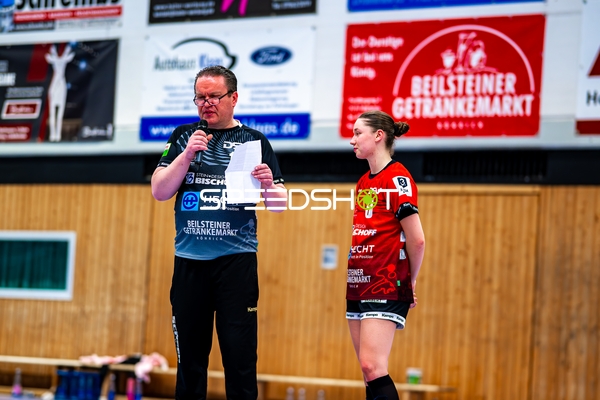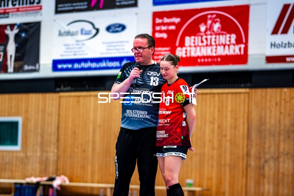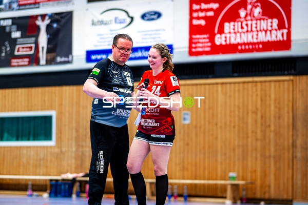 Sophie Räuchle (24, SG Schozach-Bottwartal) übergibt Mikrofon an Lisa Loehnig (77, SG Schozach-Bottwartal)