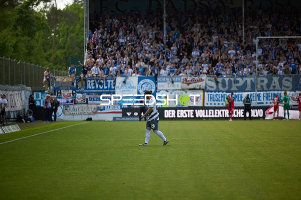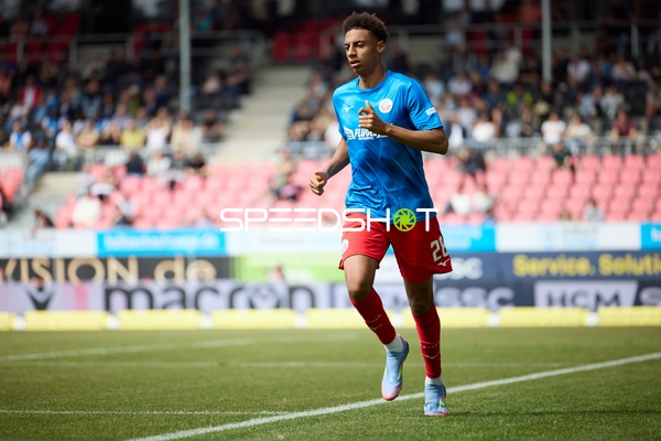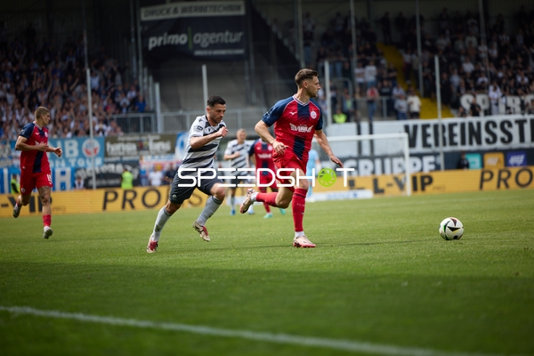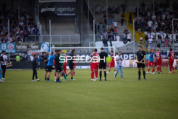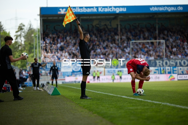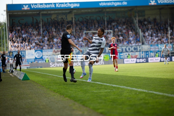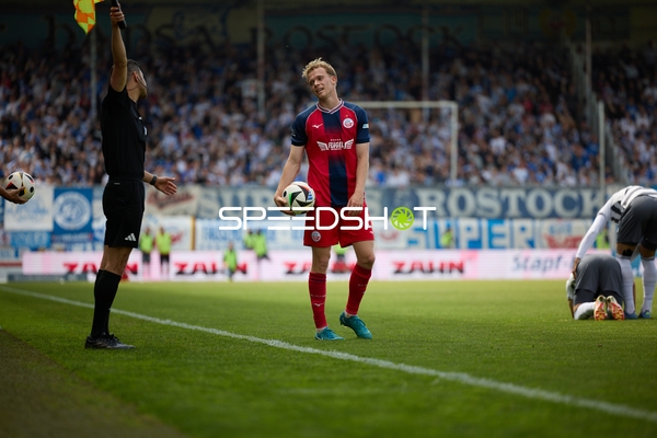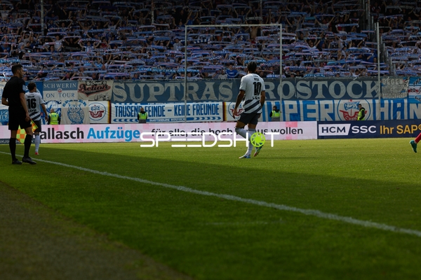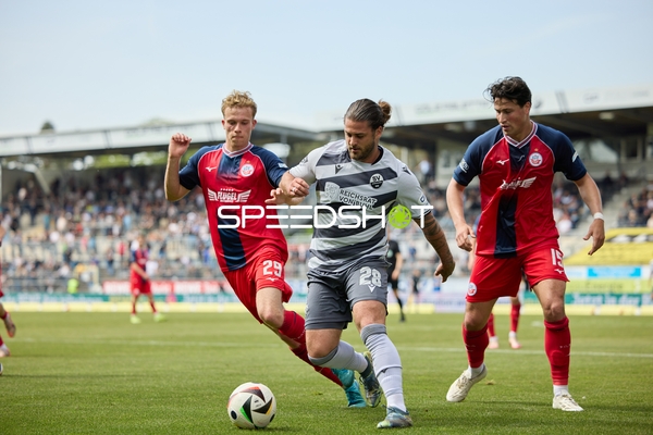 Tackle Felix Ruschke (29;FC Hansa Rostock), Dominic Baumann (28;SV Sandhausen), Ahmet Gürleyen (15;FC Hansa Rostock)