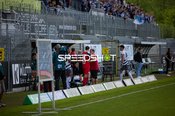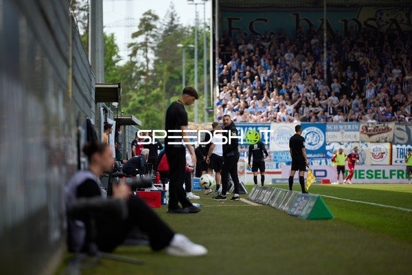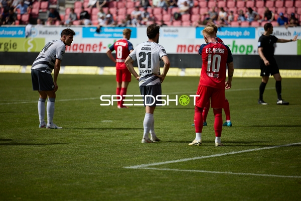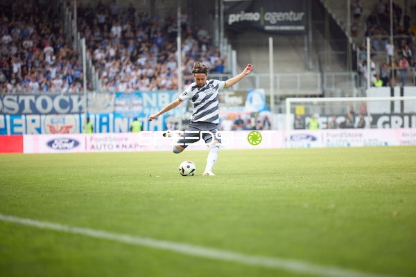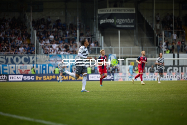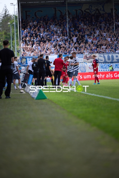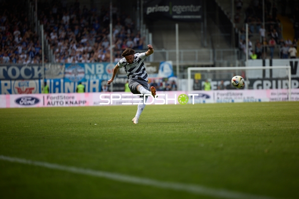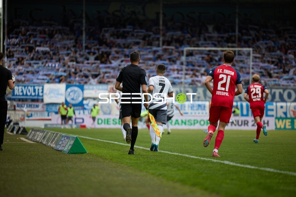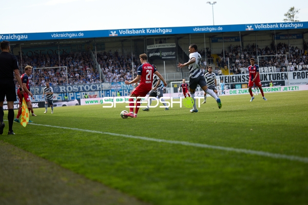 Ballkontrolle Dominic Baumann (28;SV Sandhausen), Felix Ruschke (29;FC Hansa Rostock), Ahmet Gürleyen (15;FC Hansa Rostock)