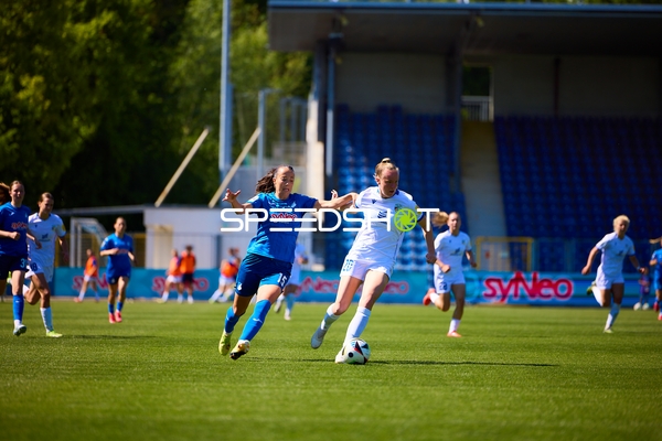 Dribbling Luca Birkholz (20;FC Carl Zeiss Jena Frauen), Marta Cazalla (15;TSG Hoffenheim Frauen 1), Michelle Weiß (27;TSG Hoffenheim Frauen 1)
