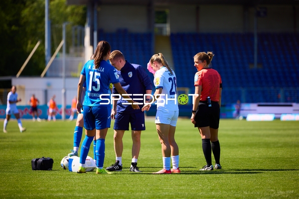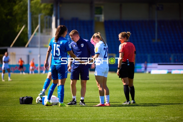 Spielunterbrechung mit Dominika Grabowska (16;TSG Hoffenheim Frauen 1), Fabienne Dongus (33;TSG Hoffenheim Frauen 1)