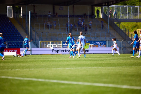 Spielszene Josephine Bonsu (23;FC Carl Zeiss Jena Frauen), Chiara Hahn (23;TSG Hoffenheim Frauen 1), Luca Birkholz (20;FC Carl Zeiss Jena Frauen)
