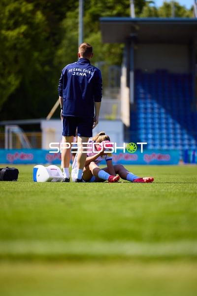 Spielunterbrechung Marta Cazalla (15;TSG Hoffenheim Frauen 1), Marco Ziermann (108;FC Carl Zeiss Jena Frauen)