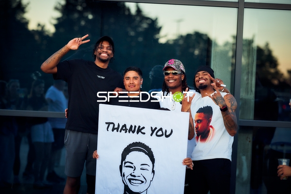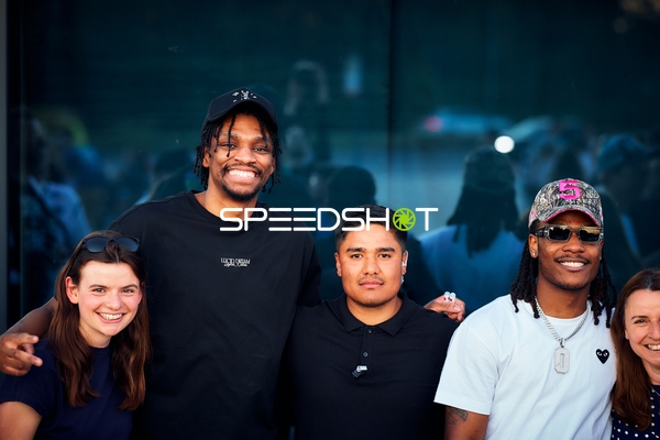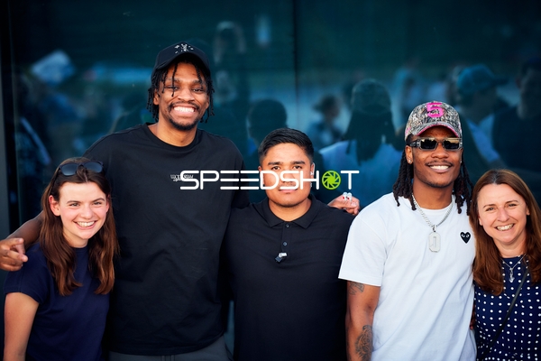 Fans posieren mit Michael Weathers (20;MLP Academics Heidelberg), Osun Osunniyi (12;MLP Academics Heidelberg)