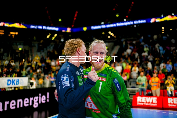 Umarmung nach Spielende Mikael Appelgren (1;Rhein Neckar Löwen), Patrick Groetzki (24;Rhein Neckar Löwen)