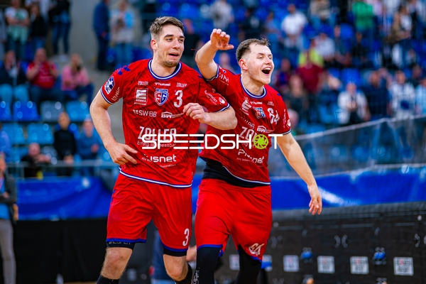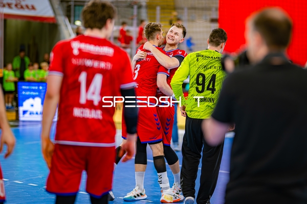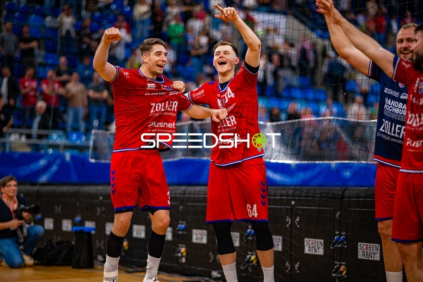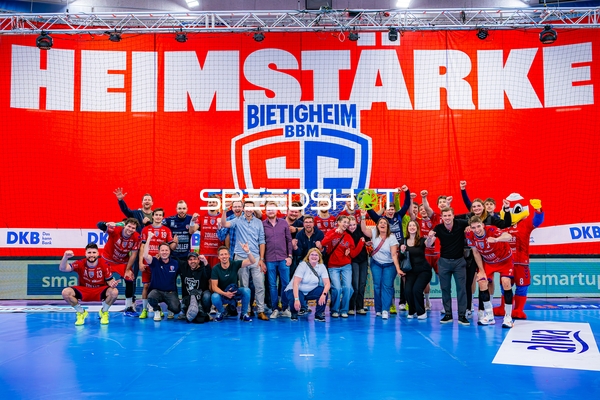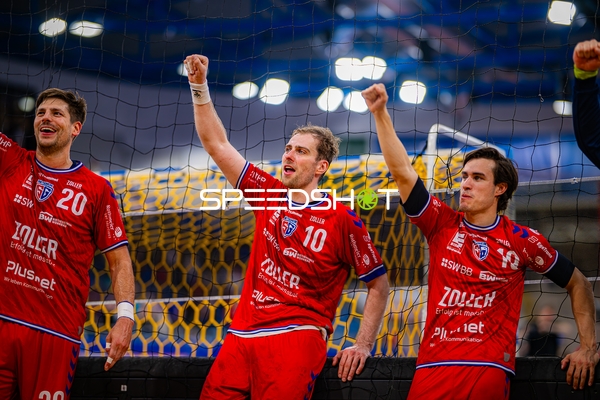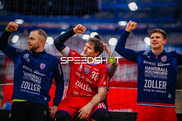 Jubel Alexander Pfeifer (31;SG BBM Bietigheim), Tom Wolf (10;SG BBM Bietigheim), Maximilian Hejny (64;SG BBM Bietigheim)