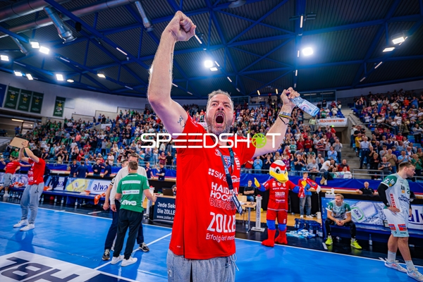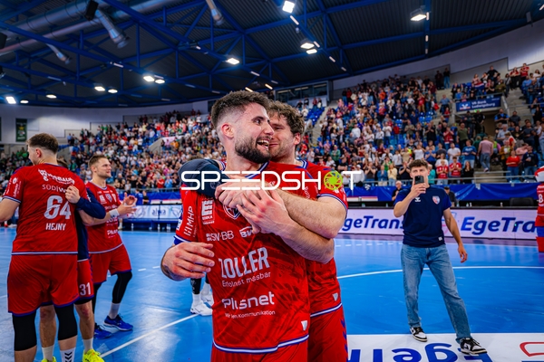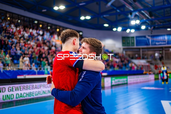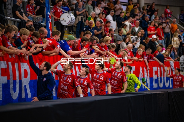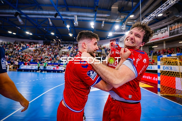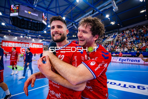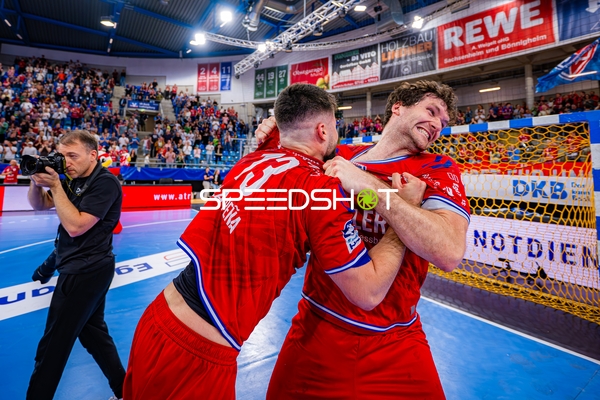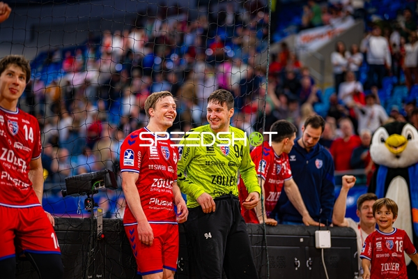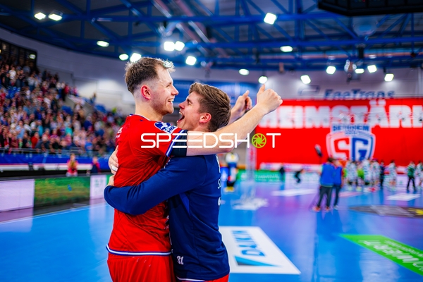 Feier nach Spielende Fabian Wiederstein (18;SG BBM Bietigheim), Juan De la Pena (13;SG BBM Bietigheim)
