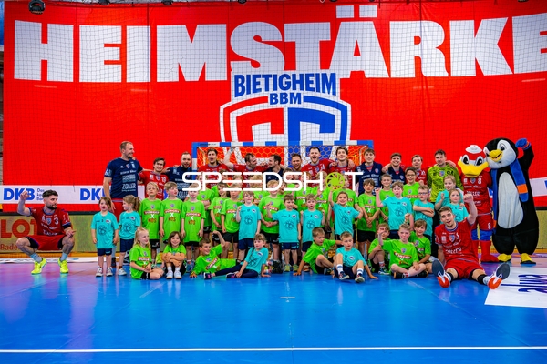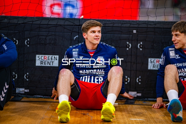 Faninteraktion Fynn Nicolaus (14;SG BBM Bietigheim), Daniel Rebmann (94;SG BBM Bietigheim), Moritz Strosack (29;SG BBM Bietigheim)