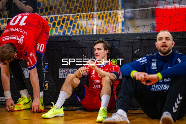 Spielende mit Alexander Pfeifer (31;SG BBM Bietigheim), Julius Kühn (5;SG BBM Bietigheim), Tom Wolf (10;SG BBM Bietigheim)