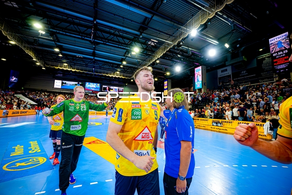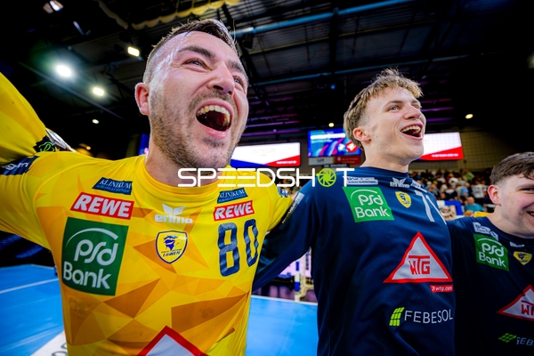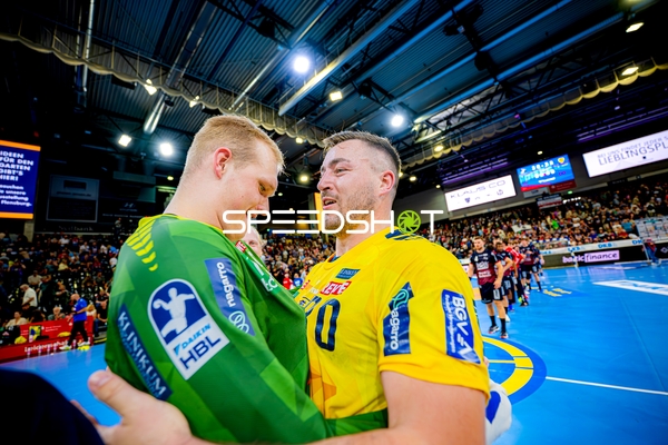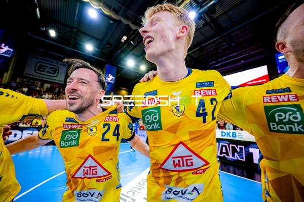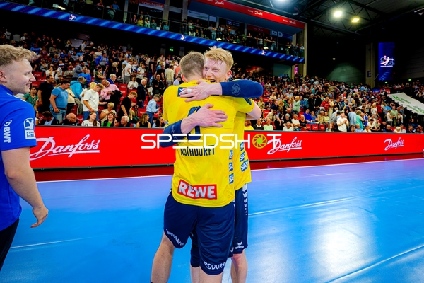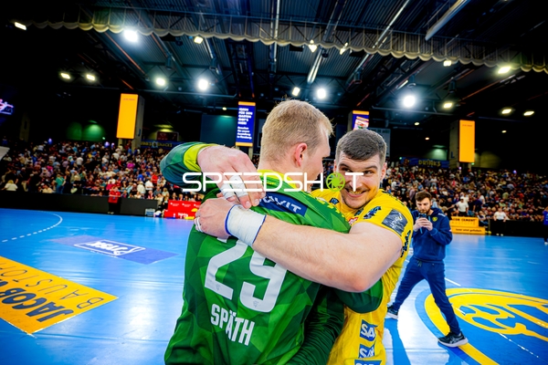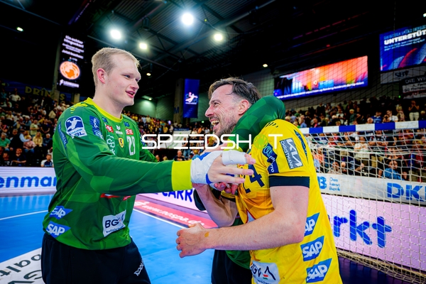 Feier nach Spielende Jannik Kohlbacher (80;Rhein Neckar Löwen), Steven Plucnar Jacobsen (9;Rhein Neckar Löwen)