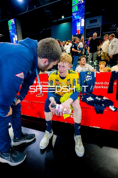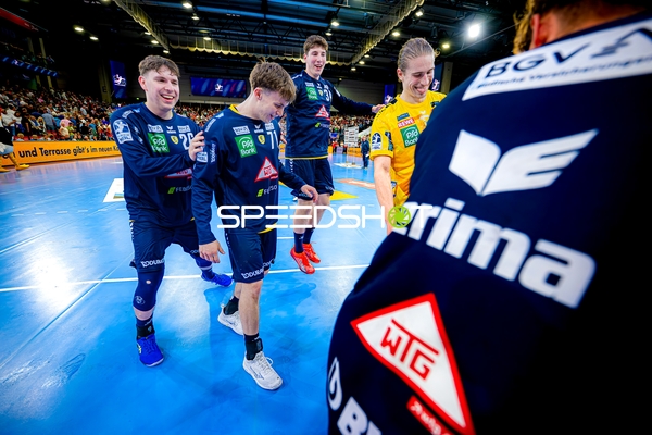 Feier Tim Nothdurft (8;Rhein Neckar Löwen), Valentin Willner (34;Rhein Neckar Löwen), Olle Forsell-Schefvert (25;Rhein Neckar Löwen), Juri Knorr (10;Rhein Neckar Löwen)