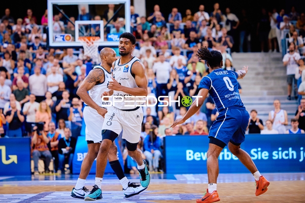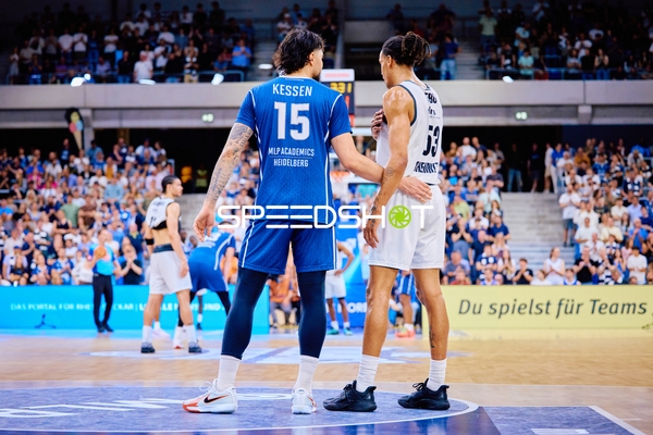 Spielerpositionierung Marcel Keßen (15;MLP Academics Heidelberg), DeAndre Lansdowne (9;Niners Chemnitz), Victor Bailey Jr (10;Niners Chemnitz)