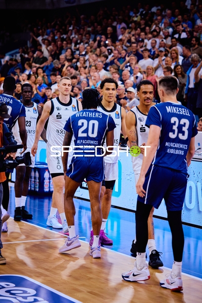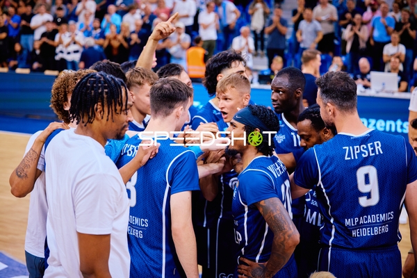 Teamzusammenhalt Paul Zipser (9;MLP Academics Heidelberg), Michael Weathers (20;MLP Academics Heidelberg), Andrew O’Brien (3;MLP Academics Heidelberg), Dominic Vengert (8;MLP Academics Heidelberg), Bakary Dibba (10;MLP Academics Heidelberg)
