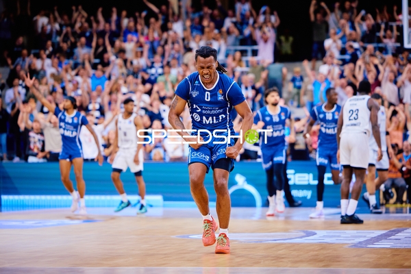 Osun Osunniyi (12, MLP Academics Heidelberg) Jubelt Basketball I Herren I Saison 2024-2025 I Playoff Viertelfinale I 2. Spieltag I MLP Academics Heidelberg – NINERS Chemnitz I 20.05.2025
