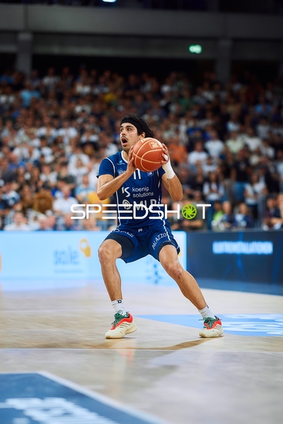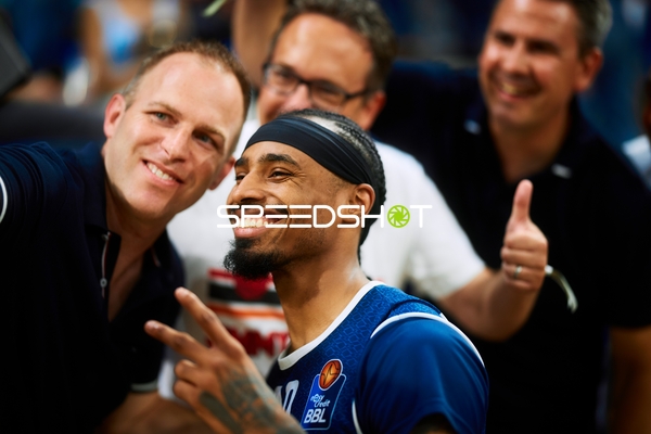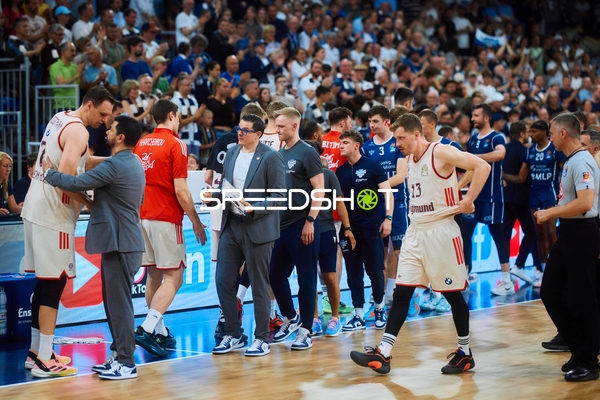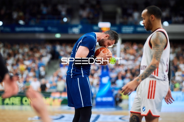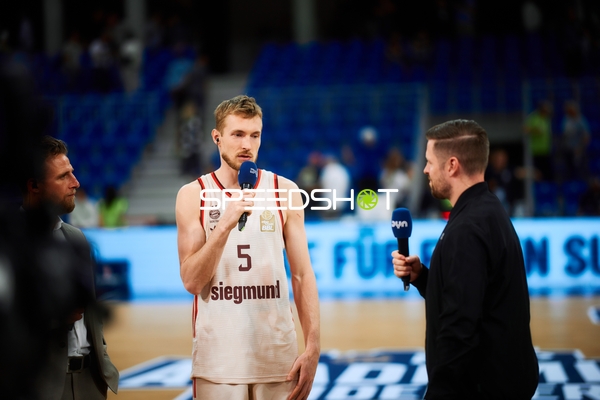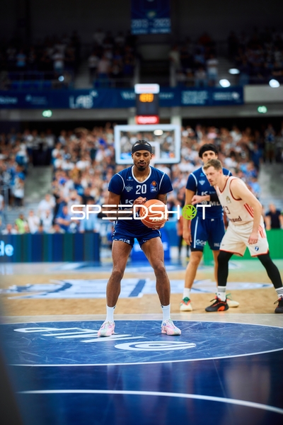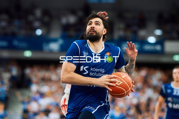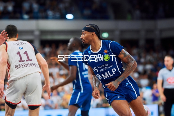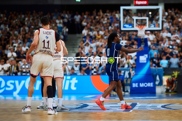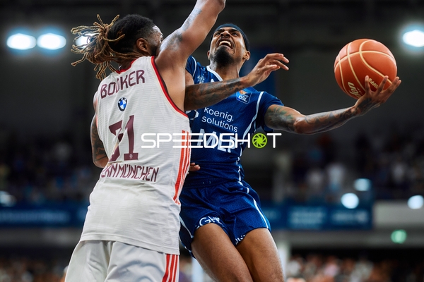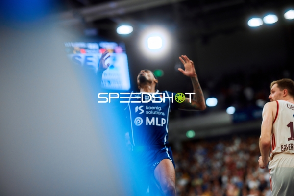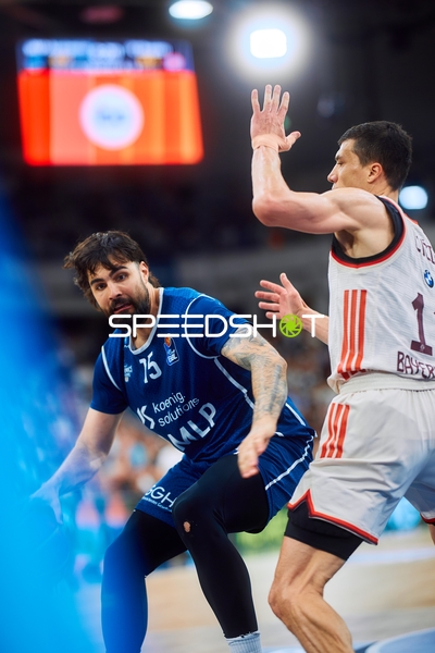 Paul Zipser (9; MLP Academics Heidelberg) mit Ball, Carsen Edwards (3; FC Bayern Basketball) verteidigt