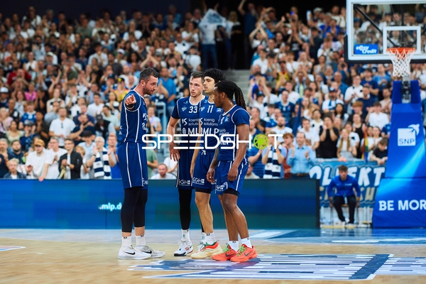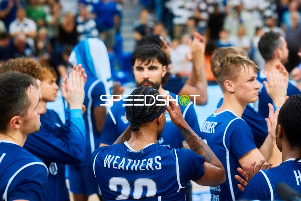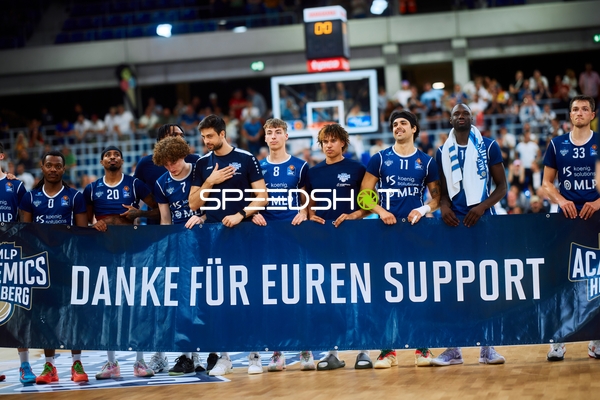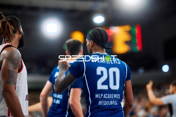 Spieler Michael Weathers (20; MLP Academics Heidelberg) und Evan Rietsch (7; MLP Academics Heidelberg) auf Court