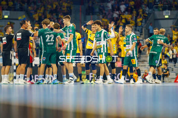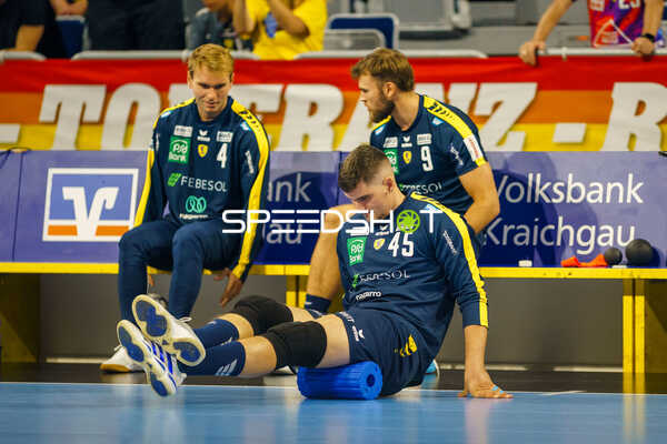 Mannschaftsbesprechung Patrick Groetzki (24; Rhein Neckar Löwen), Edwin Aspenbäck (78; Rhein Neckar Löwen) und Halil Jaganjac (45; Rhein Neckar Löwen)