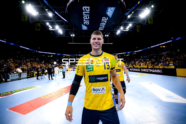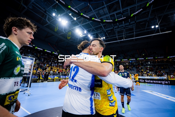 David Späth (29; Rhein Neckar Löwen) und Edwin Aspenbäck (78; Rhein Neckar Löwen) positionieren sich