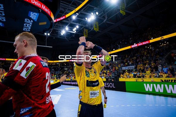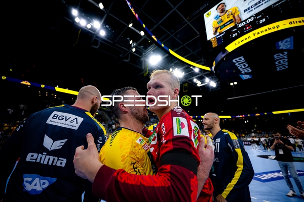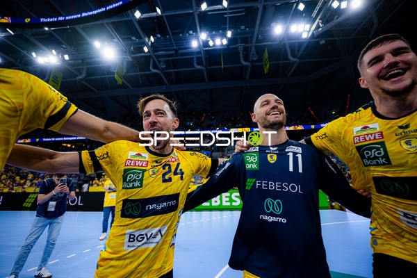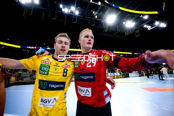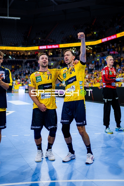 Dani Baijens (77; Rhein Neckar Löwen) und Patrick Groetzki (24; Rhein Neckar Löwen) jubeln gemeinsam