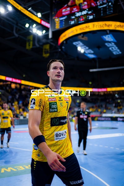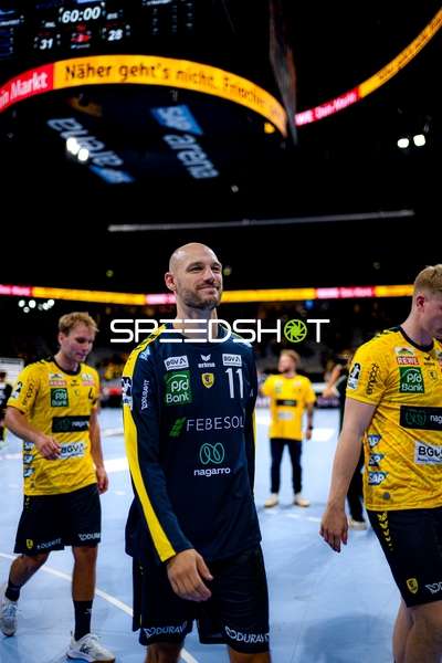 Kevin Gerwin (49; Rhein Neckar Löwen), Jannik Kohlbacher (80; Rhein Neckar Löwen) und Sebastian Heymann (13; Rhein Neckar Löwen) positionieren sich