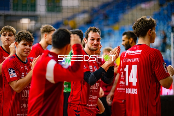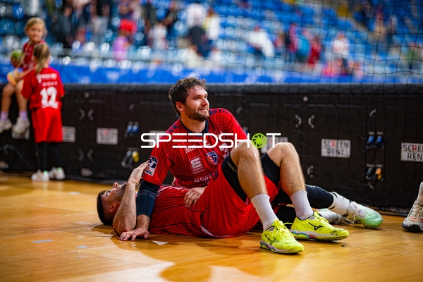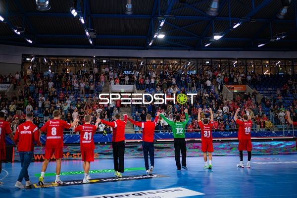 Alexander Pfeifer (31; SG BBM Bietigheim) und Fabian Wiederstein (18; SG BBM Bietigheim) applaudieren