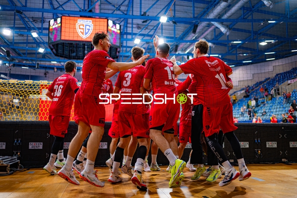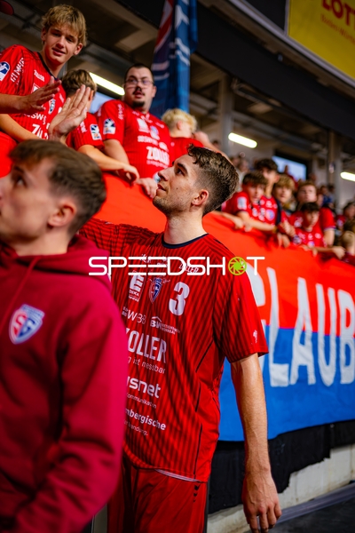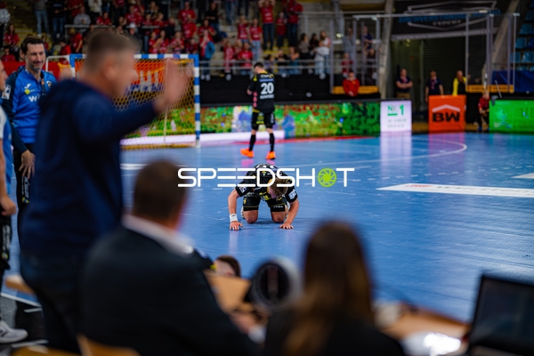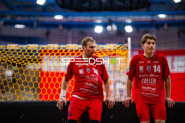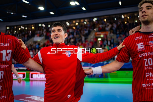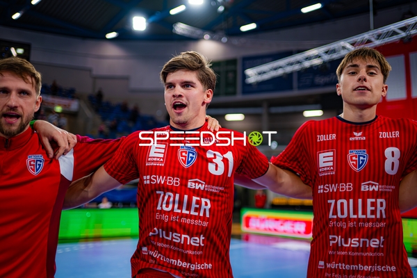 Alexander Pfeifer (31; SG BBM Bietigheim) und 8; SG BBM Bietigheim und Fynn Nicolaus (14; SG BBM Bietigheim) positionieren sich