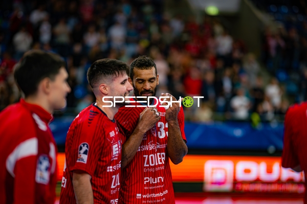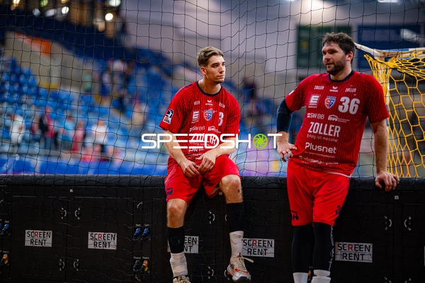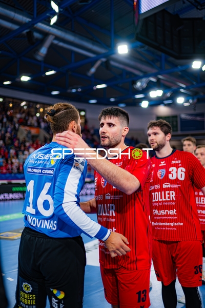 Nikola Vlahovic (3; SG BBM Bietigheim) und Jonathan Fischer (36; SG BBM Bietigheim) positionieren sich