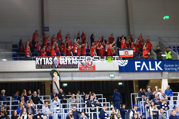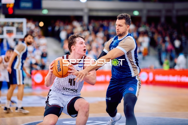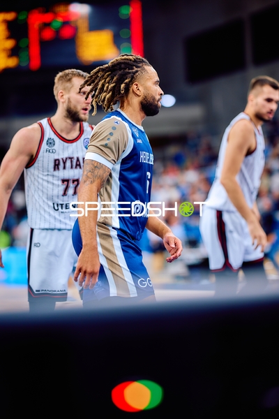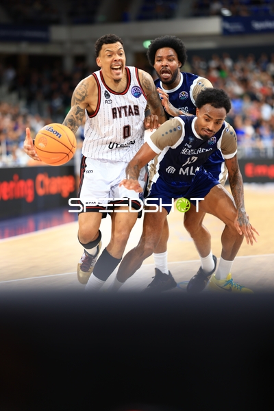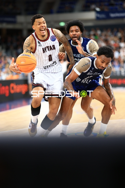 Spielszene mit Osun Osunniyi (12; MLP Academics Heidelberg) und Gytis Radzevicius (7; Rytas Vilnius)