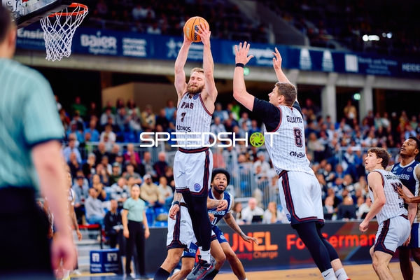 Sprungwurf von Dusan Neskovic (7; MLP Academics Heidelberg) gegen Dominic Vengert (8; MLP Academics Heidelberg)