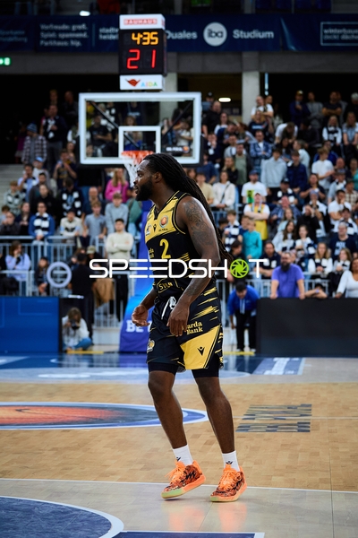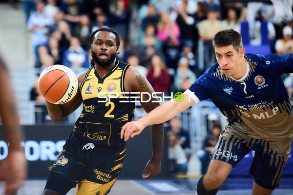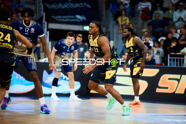 Defensive Aktion mit Keeshawn Kellman (32; MHP Riesen Ludwigsburg) und Osun Osunniyi (12; MLP Academics Heidelberg)