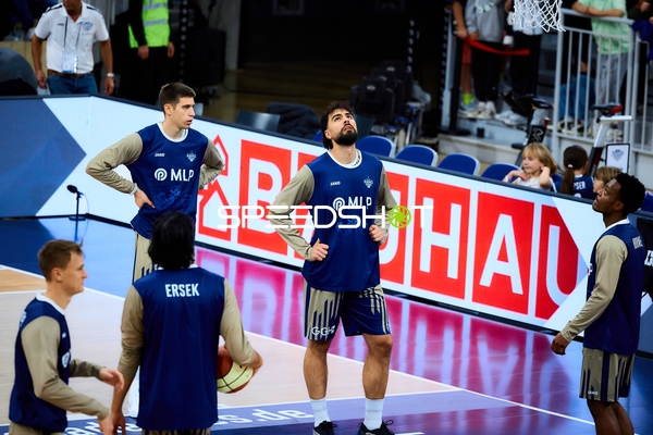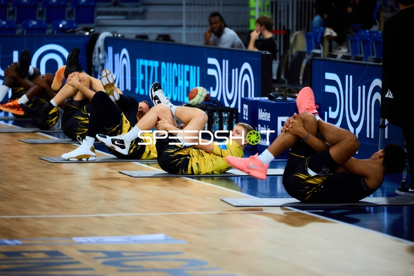 Warm-up mit Niklas Würzner (2; MLP Academics Heidelberg) und Samuell Williamson (10; MLP Academics Heidelberg)