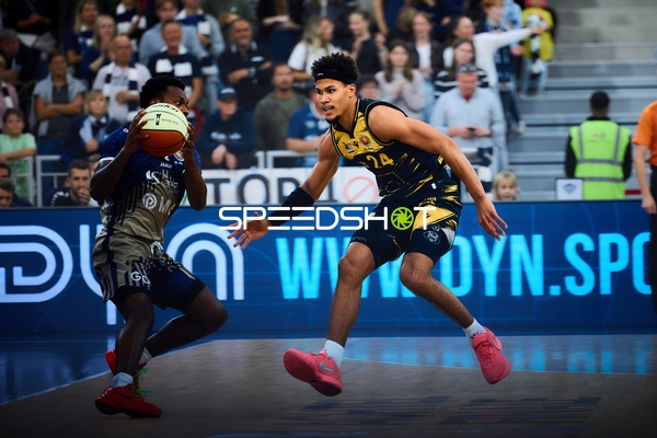 Spielszene mit Lenny Anigbata (12; MHP Riesen Ludwigsburg) und Yorman Polas Bartolo (13; MHP Riesen Ludwigsburg)