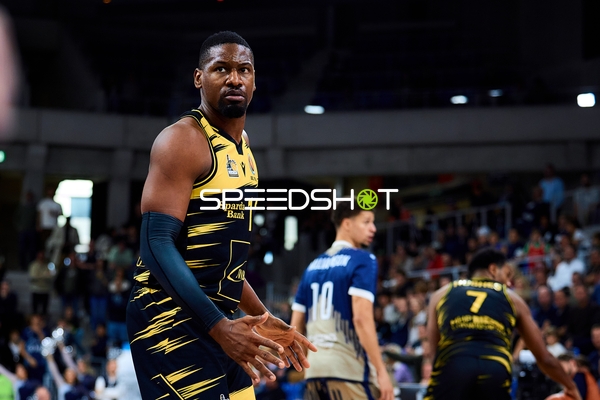 Spielszene mit Yorman Polas Bartolo (13; MHP Riesen Ludwigsburg) und Samuell Williamson (10; MLP Academics Heidelberg)