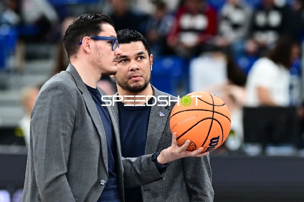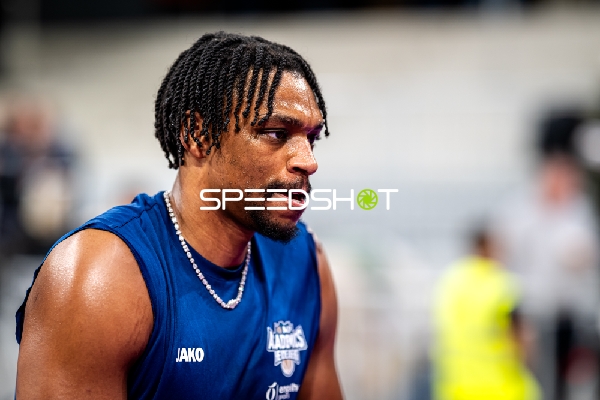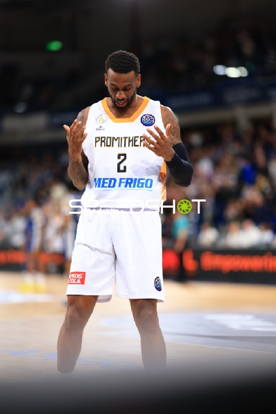 Spielszene mit Leyton Hammonds (2; Promitheas Patras Vikos Cola) und Marcus Weathers (00; MLP Academics Heidelberg)