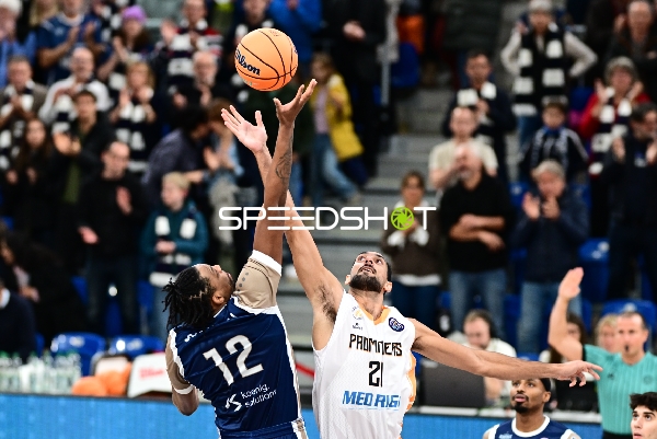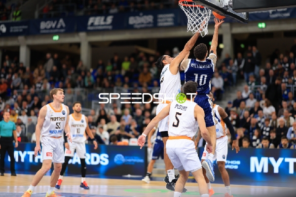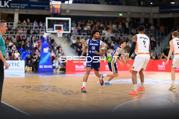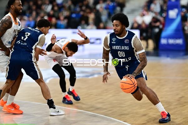 Spielszene mit Marcus Weathers (00; MLP Academics Heidelberg) und Samuell Williamson (10; MLP Academics Heidelberg)