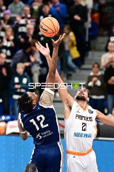 Spieler Osun Osunniyi (12; MLP Academics Heidelberg) und Mateo Seric (21; MLP Academics Heidelberg) in Aktion