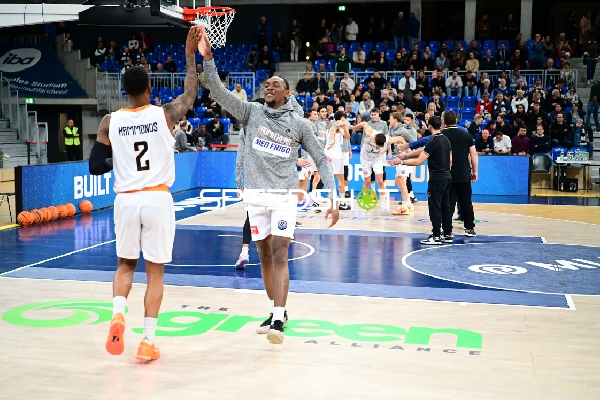 Spielszene mit Antonios Karagiannidis (29; Promitheas Patras Vikos Cola) und Samuell Williamson (10; MLP Academics Heidelberg)