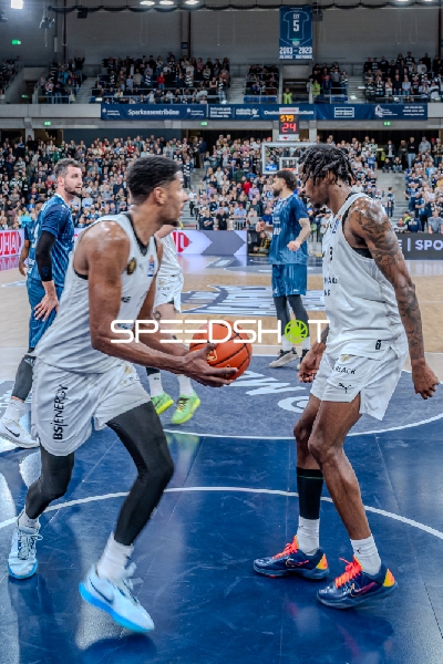 Szene mit Barra Njie (13; Basketball Löwen Braunschweig) und Chip Flanigan (30; Basketball Löwen Braunschweig)