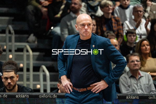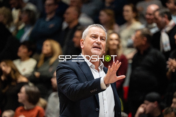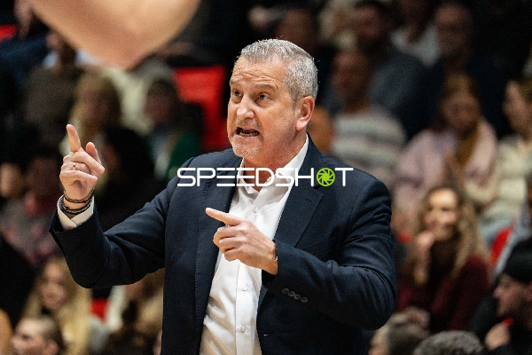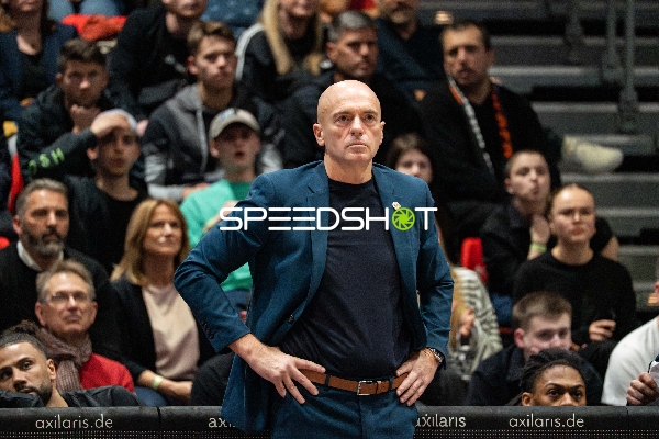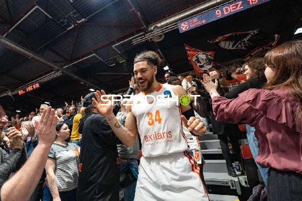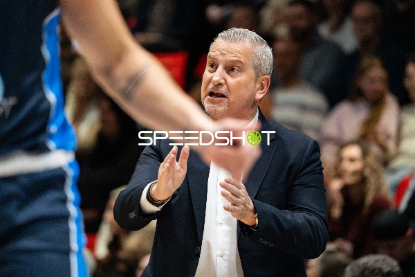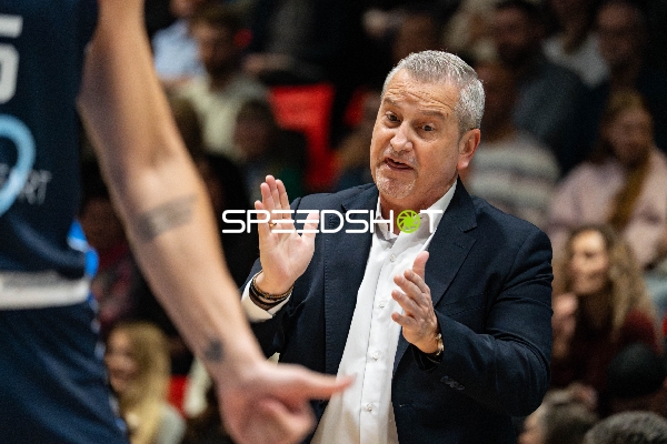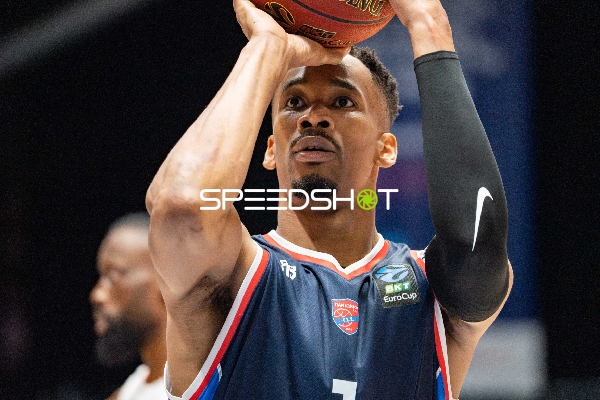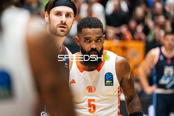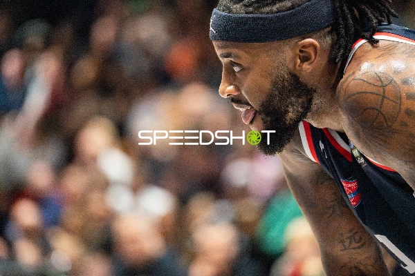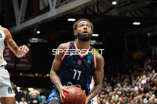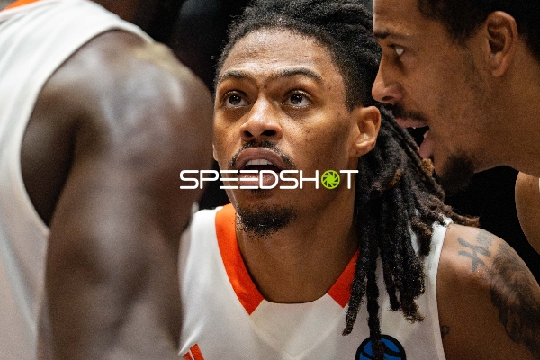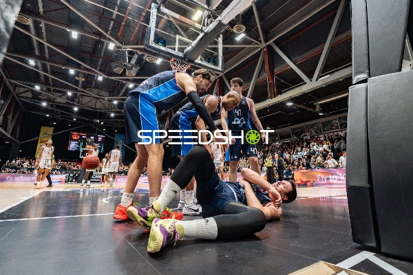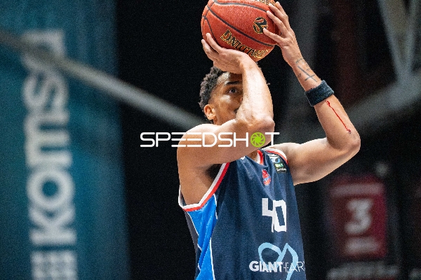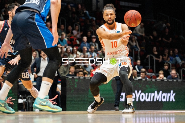 Jaylen Hands (40; Panionios Athen) mit Ball gegen John Newman III (9; NINERS Chemnitz) und 88; NINERS Chemnitz