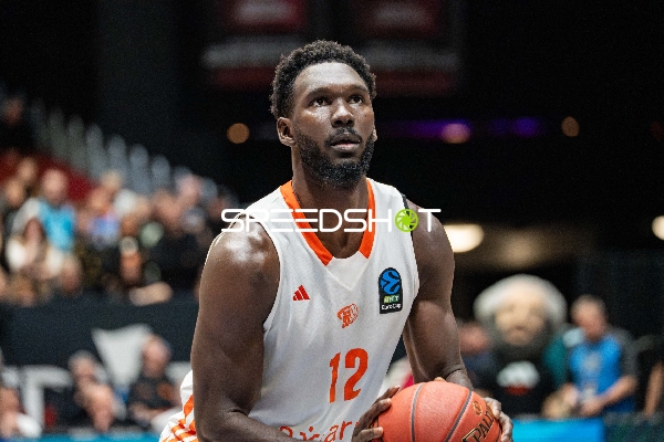 Amadou Sow (12; NINERS Chemnitz) mit Ball vor Markel Starks (2; Panionios Athen) und Jaylen Hands (40; Panionios Athen)