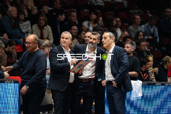 Szene mit Markel Starks (2; Panionios Athen), George Papas (3; Panionios Athen) und Michalis Lountzis (5; Panionios Athen) am Spielfeldrand