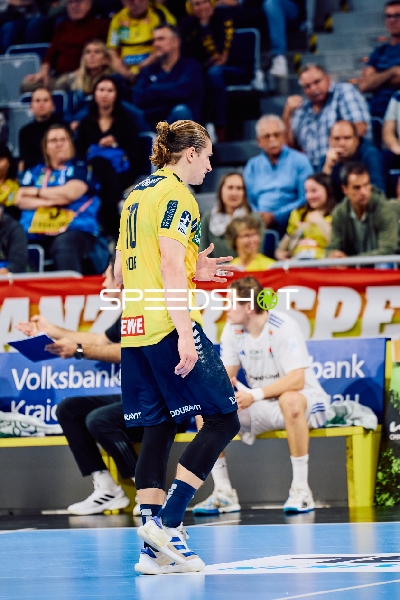 Ein Spieler von Rhein Neckar Löwen verlässt das Spielfeld.
