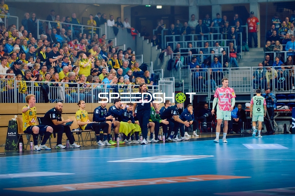 Jubel der Rhein Neckar Löwen nach einem erfolgreichen Spiel.