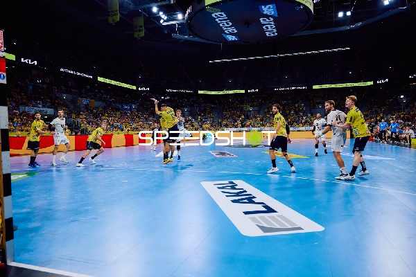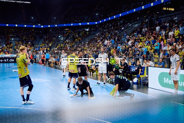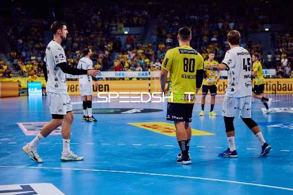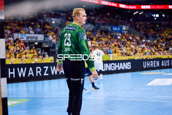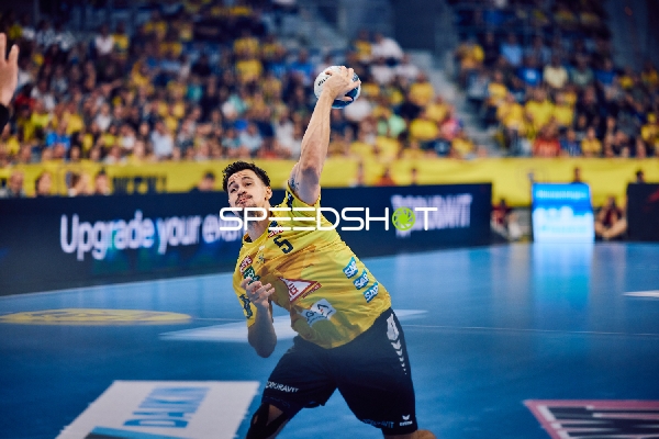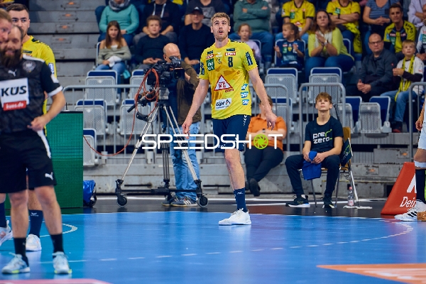 Spieler mit der Nummer 21 von THW Kiel läuft über das Spielfeld.