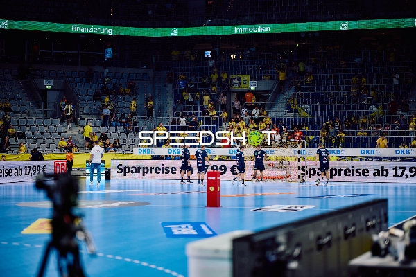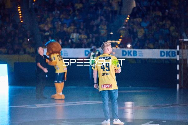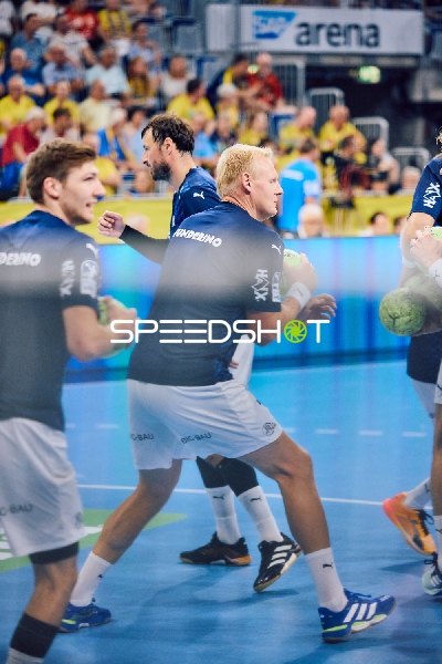 Ein Spieler der Rhein Neckar Löwen bereitet sich auf das Spiel vor.