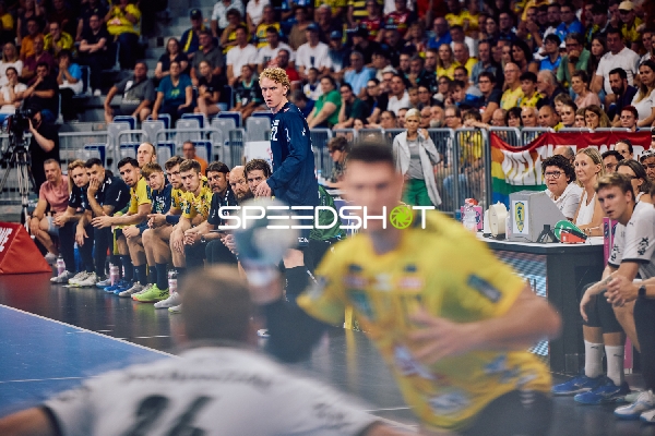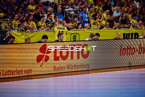 Spieler von Rhein Neckar Löwen sitzt auf der Auswechselbank.