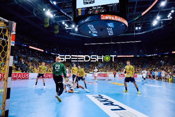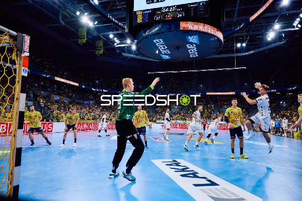 Ein Spieler von Rhein Neckar Löwen wirft auf das Tor von THW Kiel.