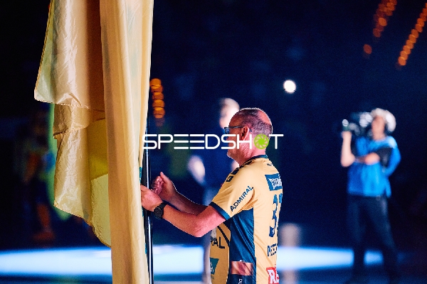 Spieler stehen im Backstagebereich und unterhalten sich vor dem Match.